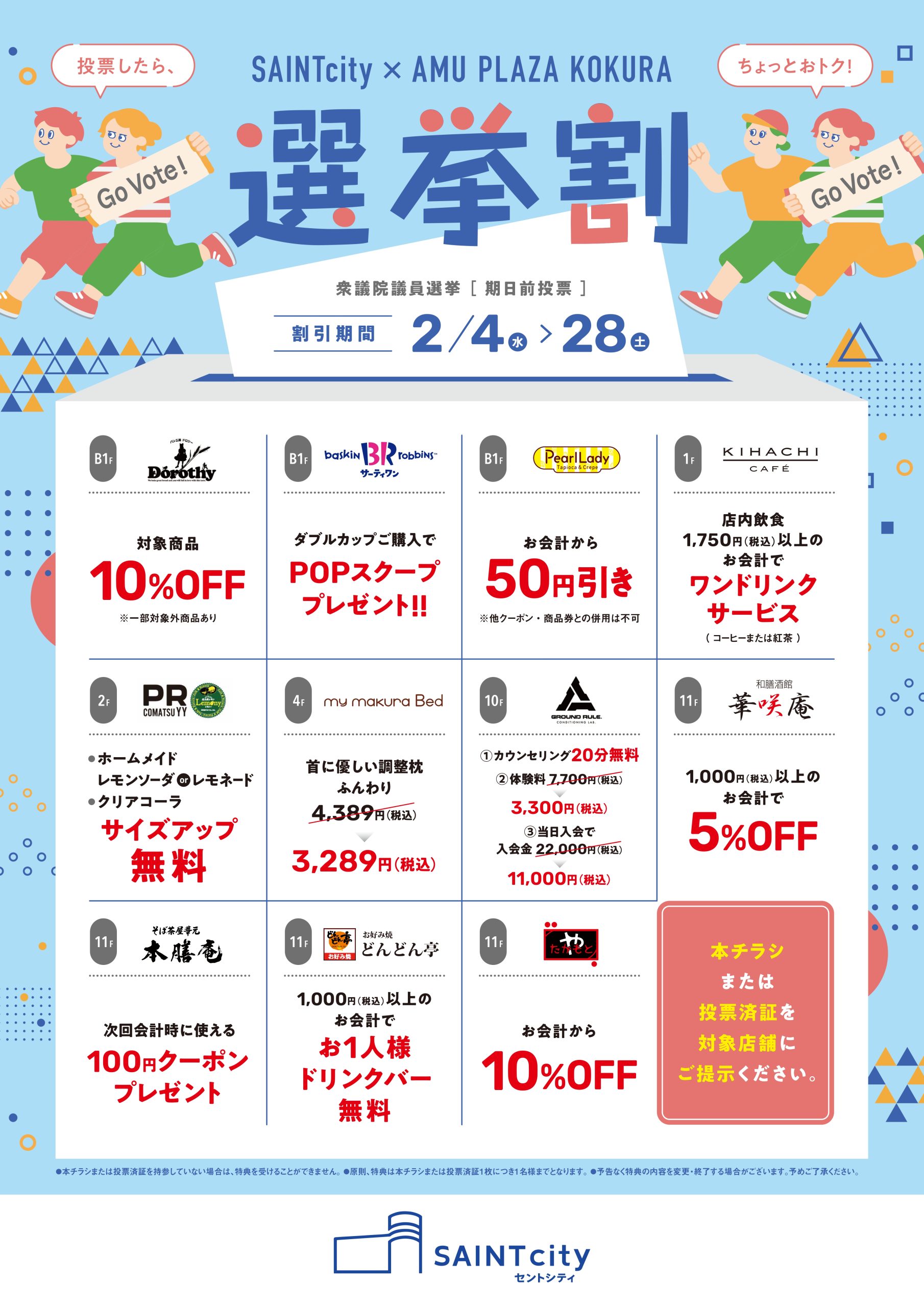 対象店舗に提示すると選挙割の特典を受けられます🎁